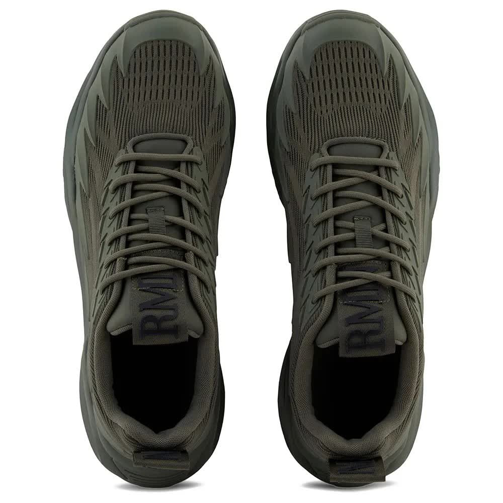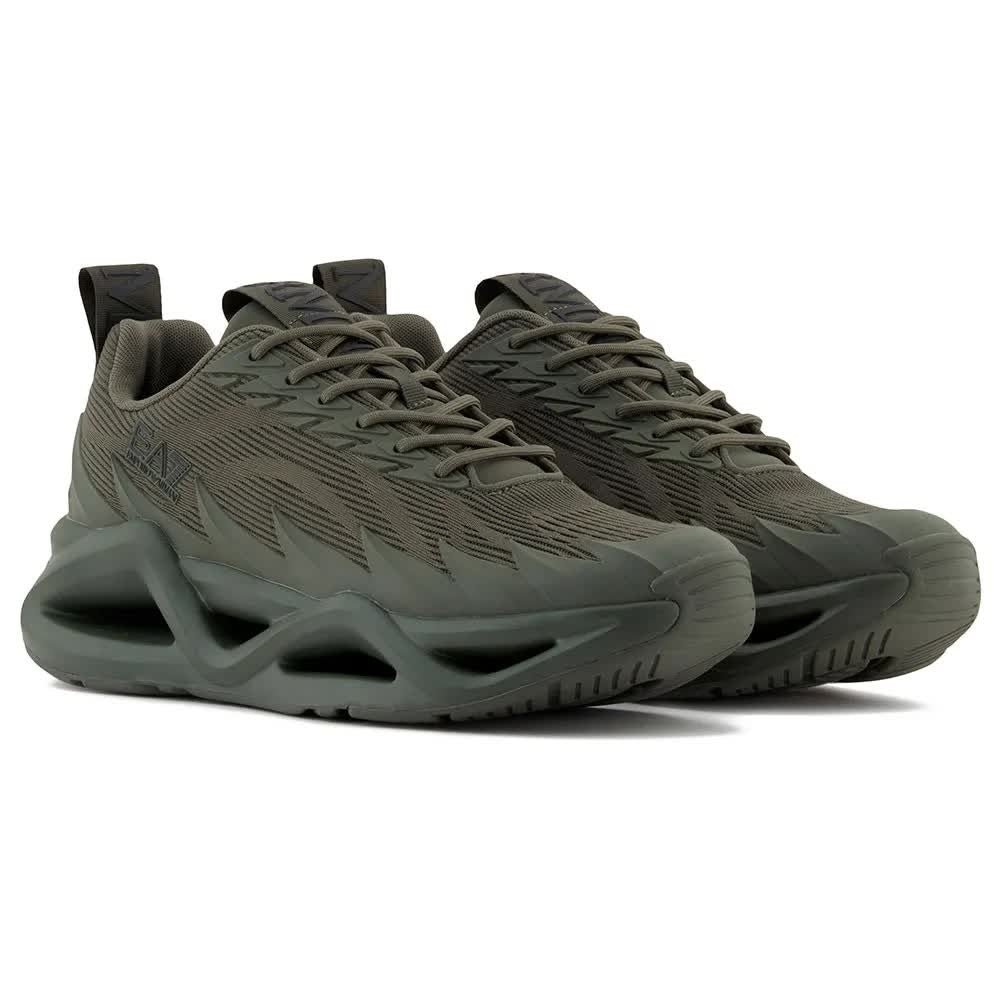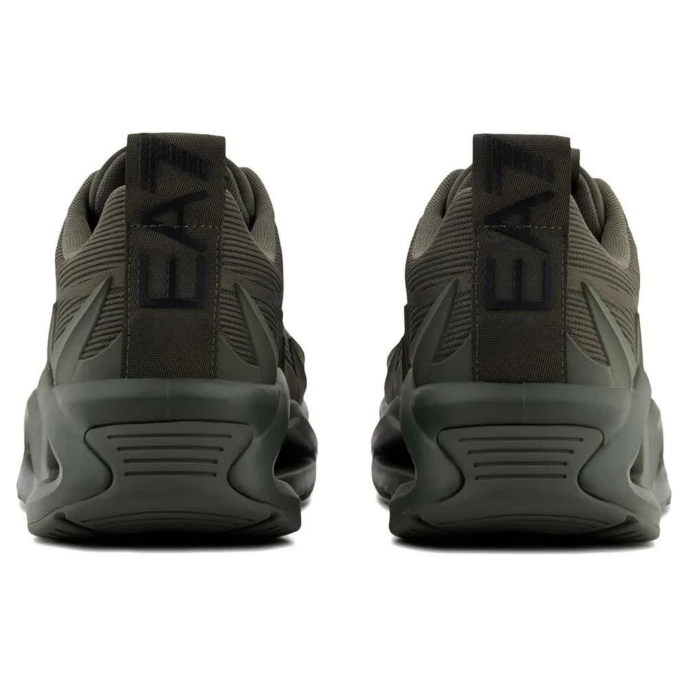 O cabedal é confeccionado em tecido respirável e elementos sintéticos cuidadosamente selecionados, garantindo leveza e conforto para o uso diário. Ranhuras marcantes e padrões sutis enfatizam a natureza esportiva e exclusiva deste modelo. O logotipo "RMA" na lingueta e a ousada inscrição "EA7" na alça destacam claramente o prestígio da marca.