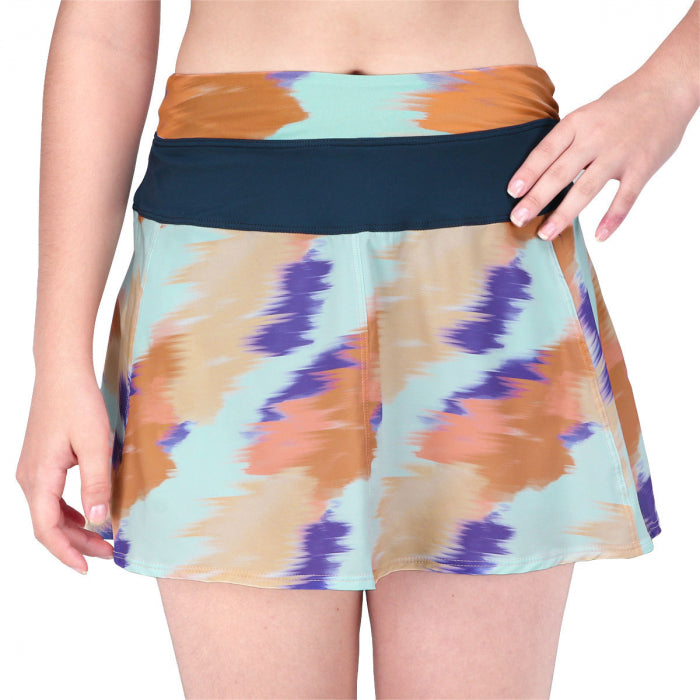 Ele é confeccionado com tecidos leves e respiráveis, com um cós elástico e um cordão ajustável, além de dois bolsos laterais e um bolso traseiro com zíper para guardar objetos pessoais.