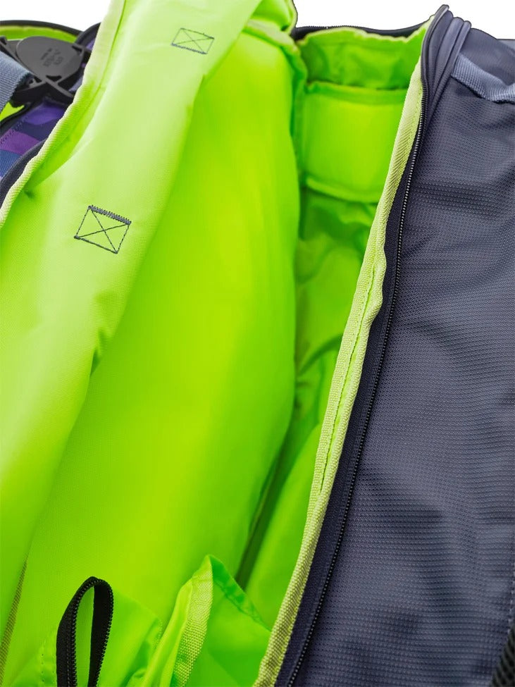 - Três grandes compartimentos para raquetes (um dos quais com tecnologia de proteção climática) podem acomodar até 9 raquetes no total;