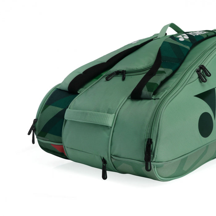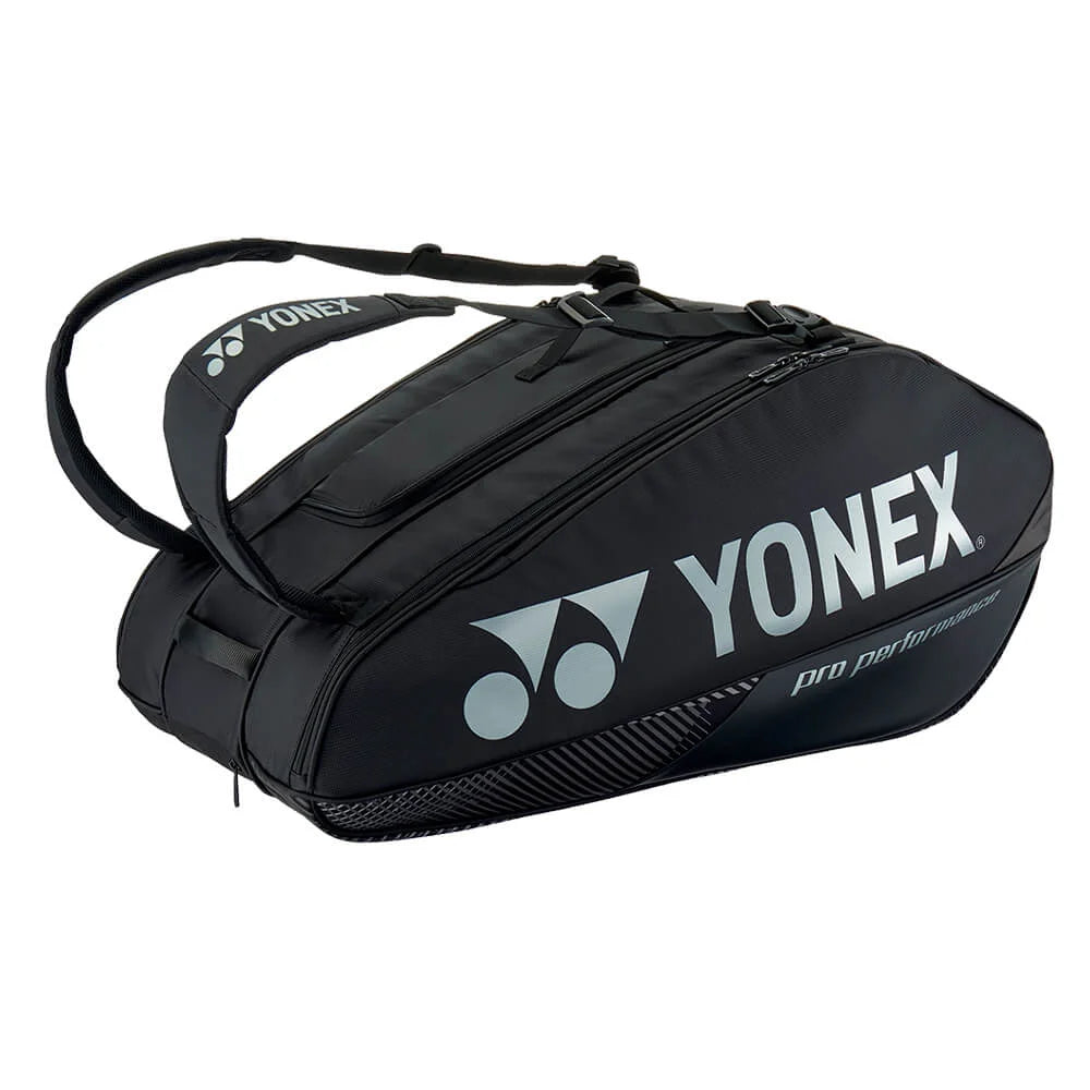 Construída para atender às demandas de competidores sérios, a bolsa de tênis Yonex Pro Tripla 9 Pack é uma opção durável e espaçosa. Três grandes compartimentos para raquetes são projetados para acomodar até 9 raquetes no total, enquanto um dos compartimentos possui forro de proteção climática no interior para proteger seu valioso equipamento de temperaturas extremas. O bolso do meio tem entrada em formato de U e pode ser utilizado para raquetes ou equipamentos de quadra e possui acesso a um bolso para sapatos que também pode ser acessado pela parte inferior da bolsa. As alças resistentes da mochila são acolchoadas e ajustáveis e há um grande compartimento externo para acessórios para equipamentos adicionais na frente da bolsa, bem como um bolso menor forrado de feltro para seus objetos de valor.