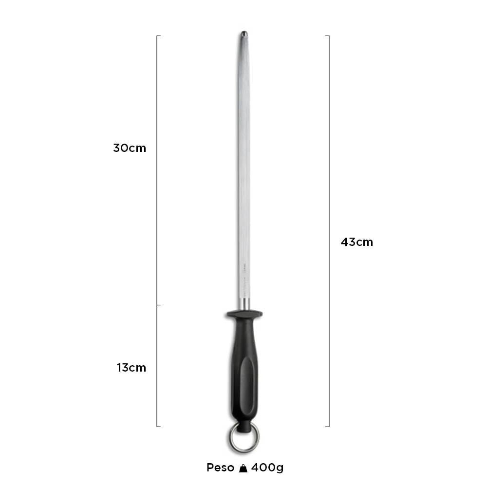 A chaira é uma ferramenta de afiação super funcional, essencial para todo Chef. Revestimento com cromo-duro, que garante maior resistência contra corrosão e deixa a superfície da chaira mais dura que a lâmina da faca.