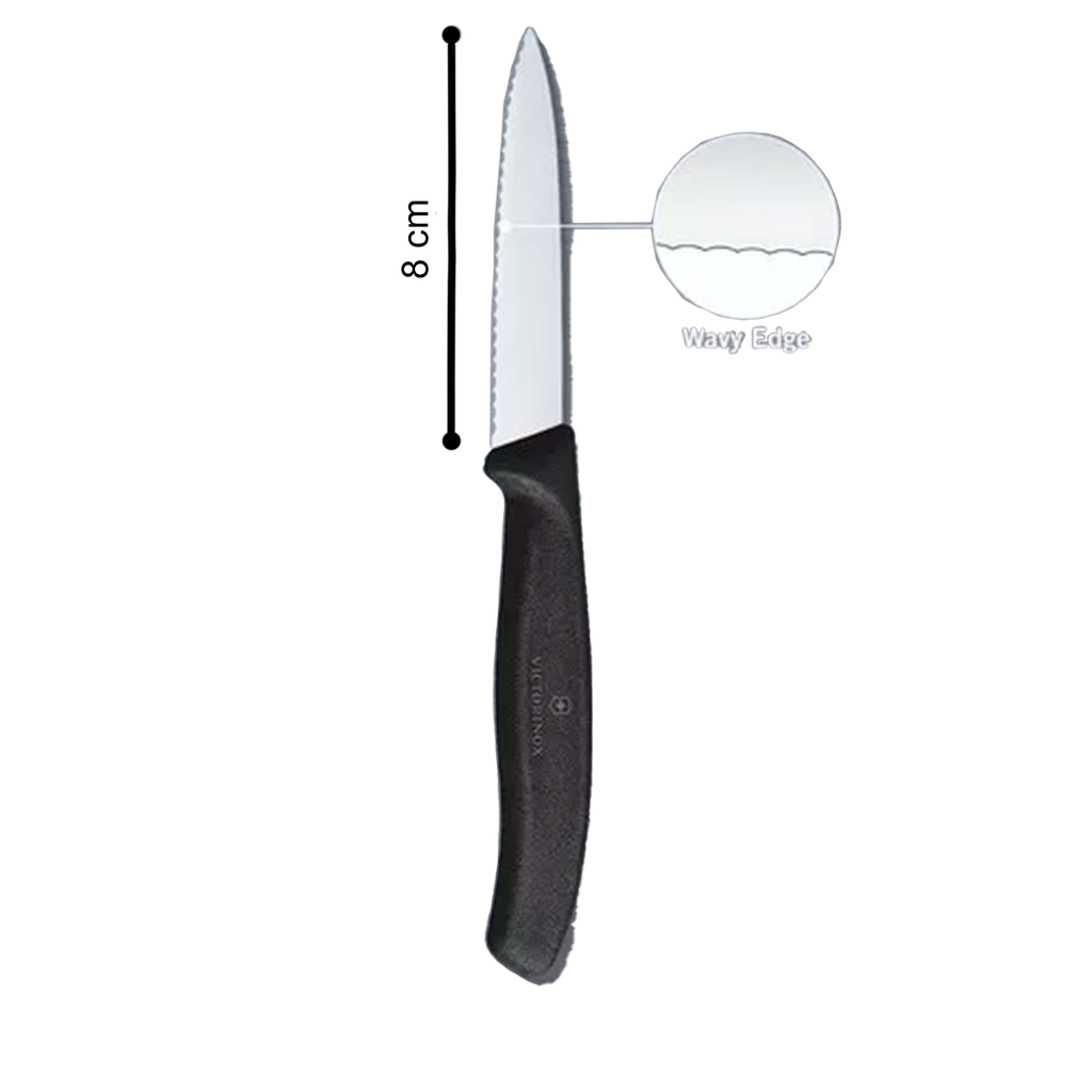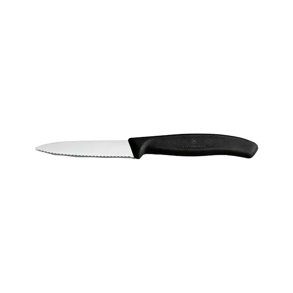 Faca para descascar feita na Suíça com lâmina serrilhada.
